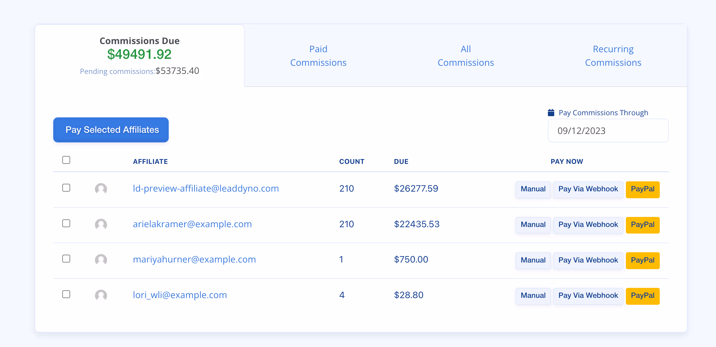Using an application like LeadDyno allows you to track leads generated by each affiliate. When you sign affiliates up to your program, you can give each of them a unique link. With these links, you can track every impression, click, and sale. Tools like LeadDyno provide a consolidated view of how each affiliate performs, allowing you to track and analyze their progress and send commission payments to them directly.